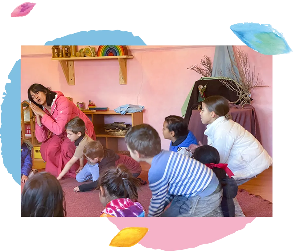 Aprendizaje a través de las artes, la narración de cuentos y la imaginación. Se promueve el pensamiento artístico y la conexión emocional.